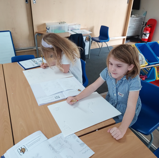 This week, we have been making ocean printing blocks ready to print with next week. We were inspired by our focus stories 'Lost and Found' and 'The Rainbow fish', which both contain ocean animals. Last week, we did careful observational drawings of a variety of ocean creatures using photographs as a reference. This week, we used our lovely line drawings to create designs on our printing blocks, thinking about spacing and sizing of images. We used a special type of foam as printing blocks. We had to press really hard when we were drawing to make the printing block. We can't wait to see how our printing turns out next week!