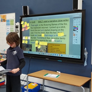 In English, we are nearing the end of our story The First Drawing and have been retelling it through a “slow write,” taking extra care with our grammar. On Thursday, the children were incredibly proud to read their work aloud to the class.